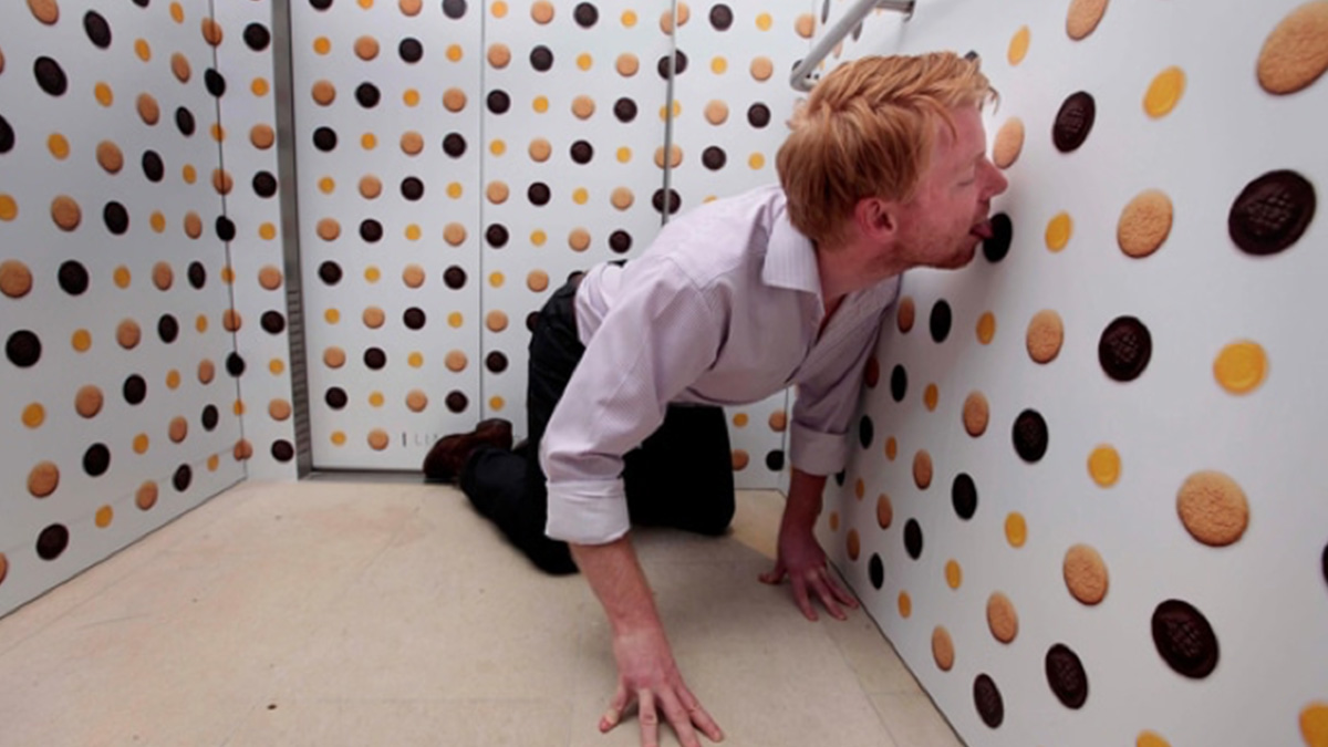 Maintaining their brand positioning as playful and fun, they created “lickable wallpaper”. With a Willy Wonka inspired wallpaper, installed in a 16-floor elevator, the campaign was designed to increase brand engagement of the delicious biscuits as well as reduce office stress.